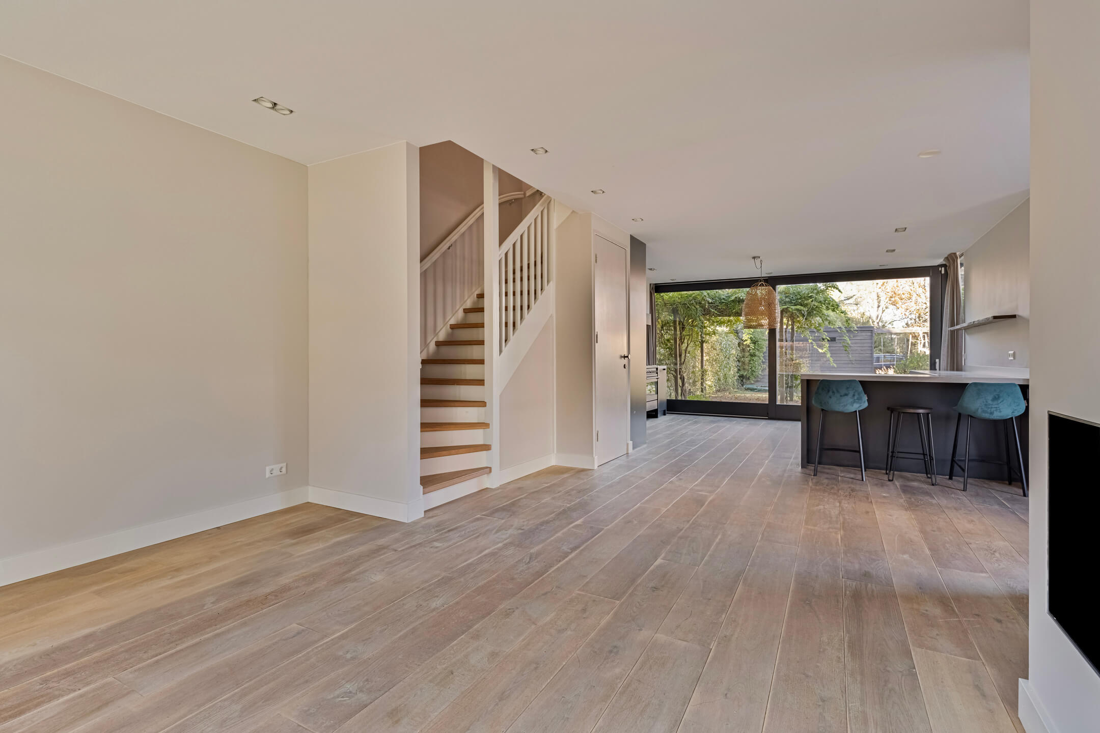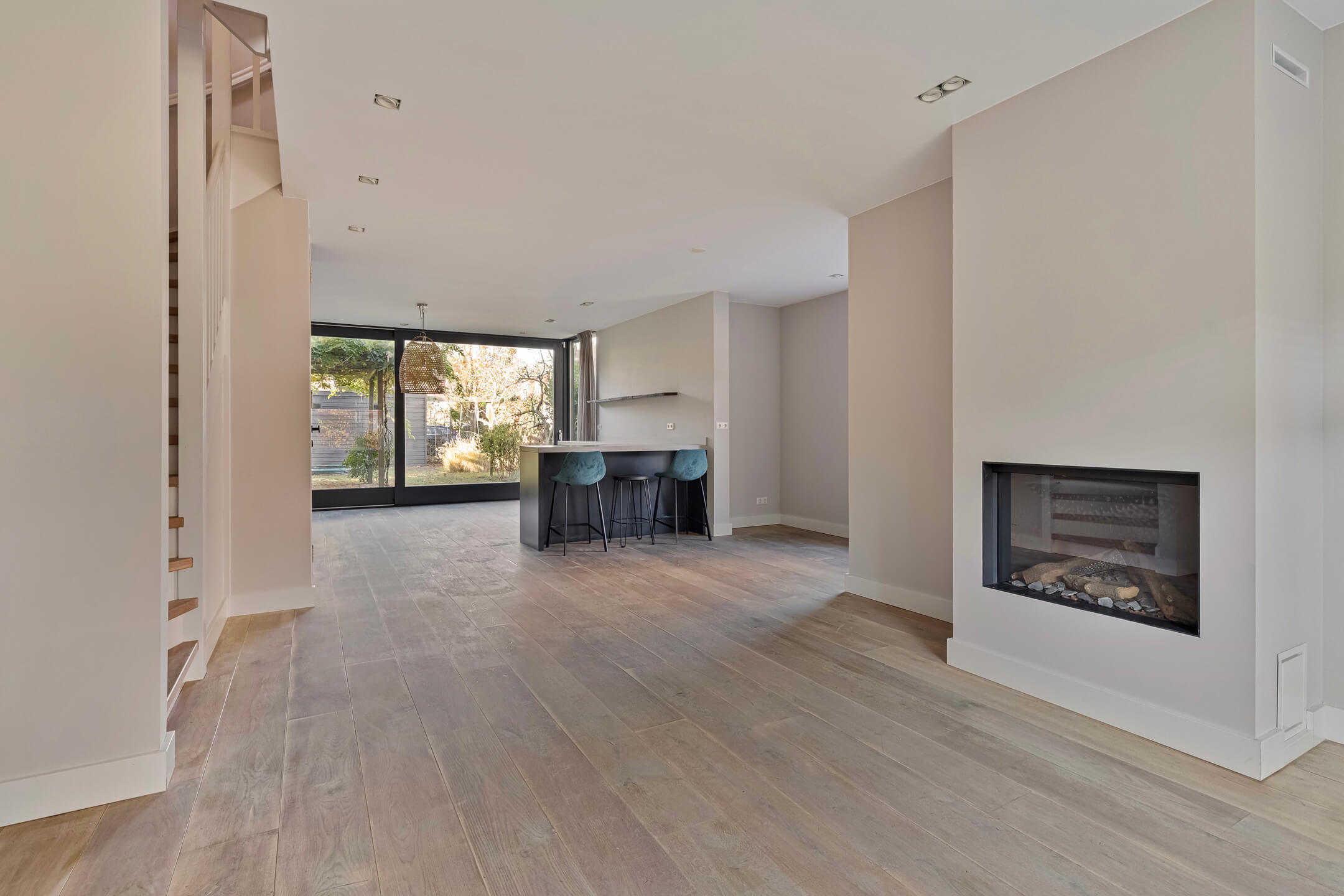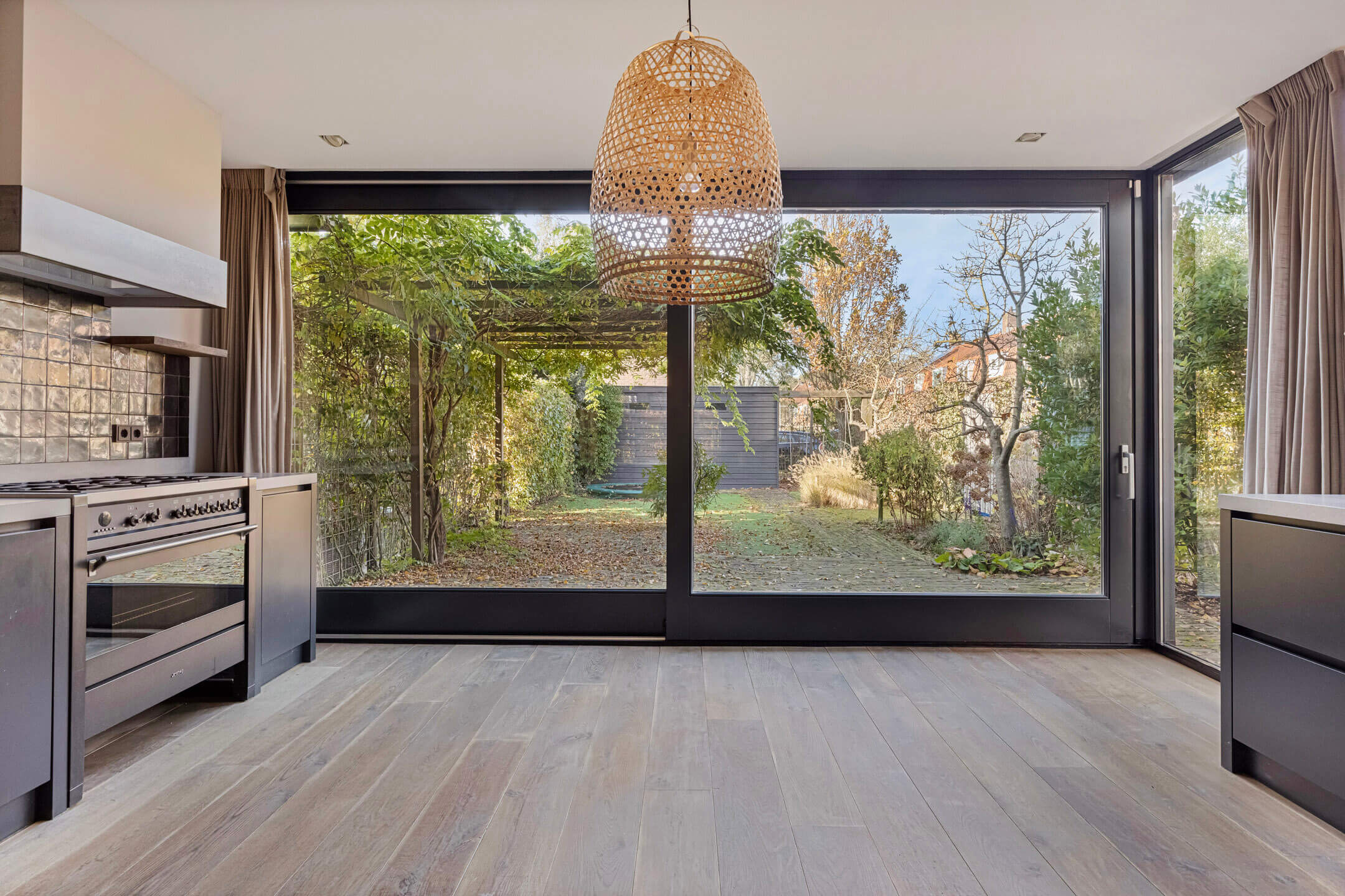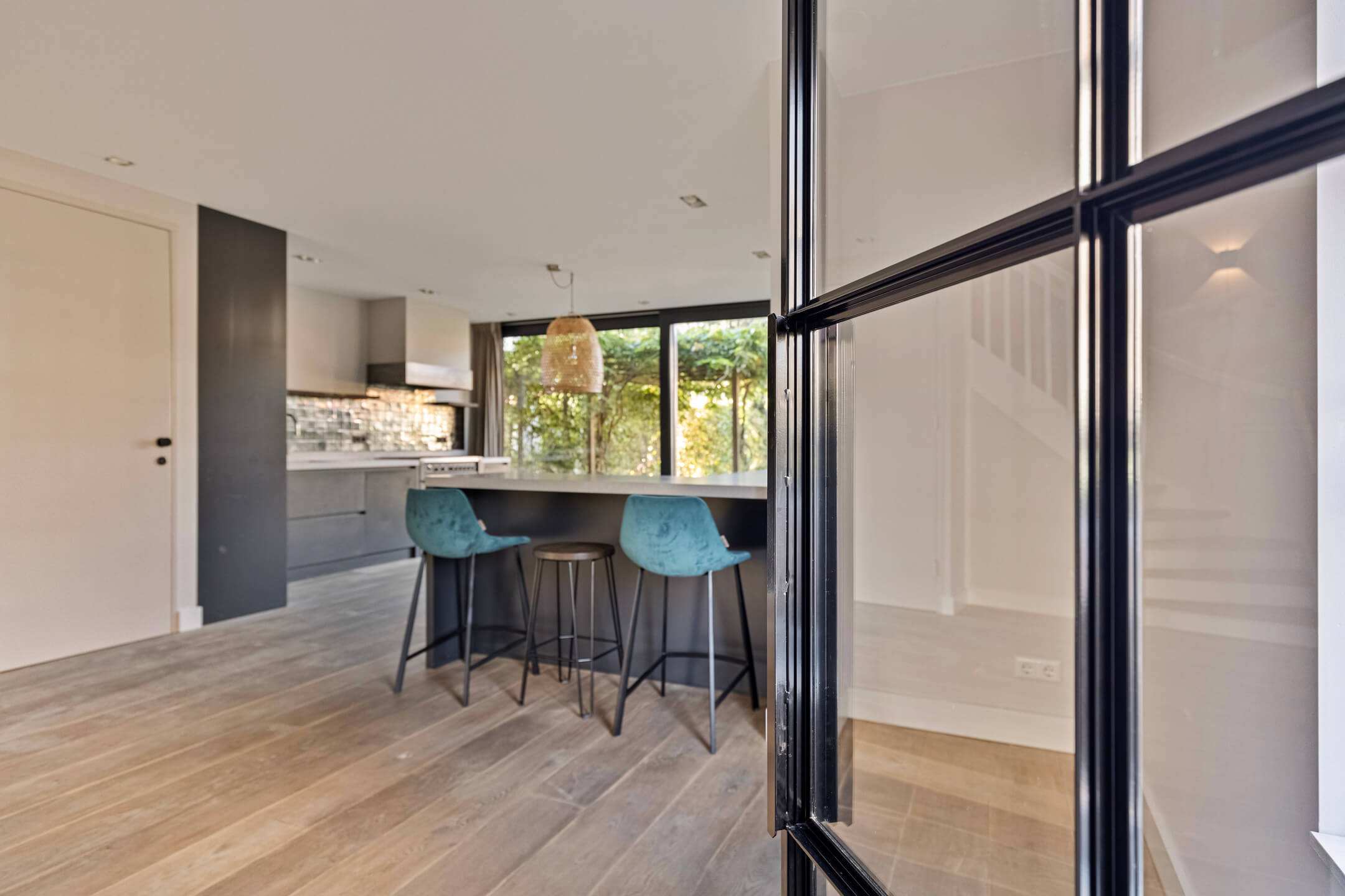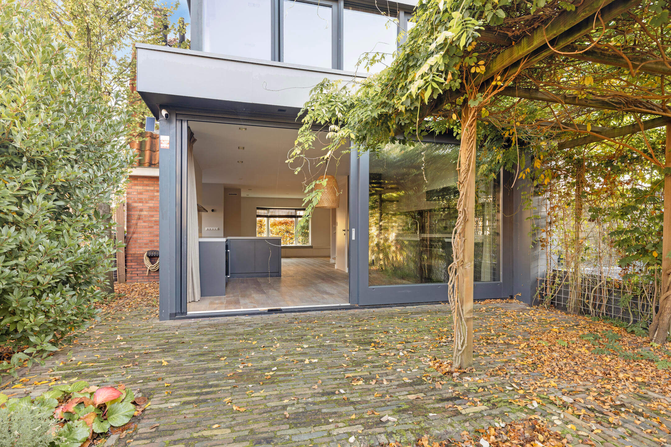 – Achtergevel volledig van glas waardoor er veel daglicht binnen komt