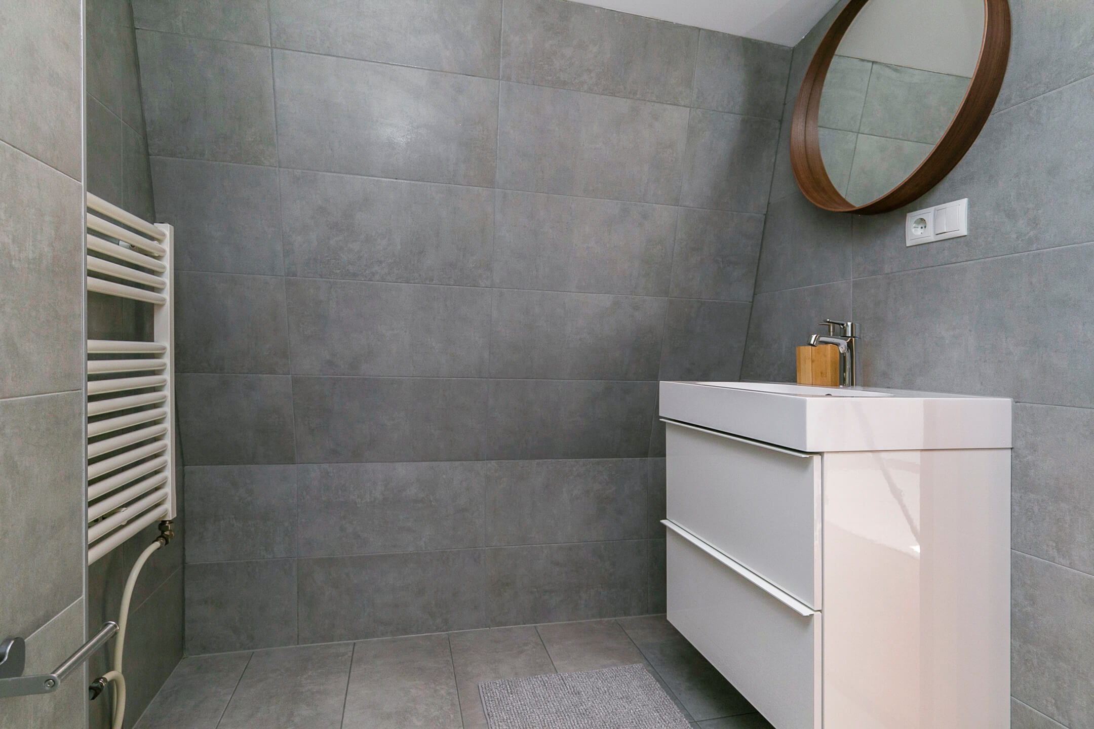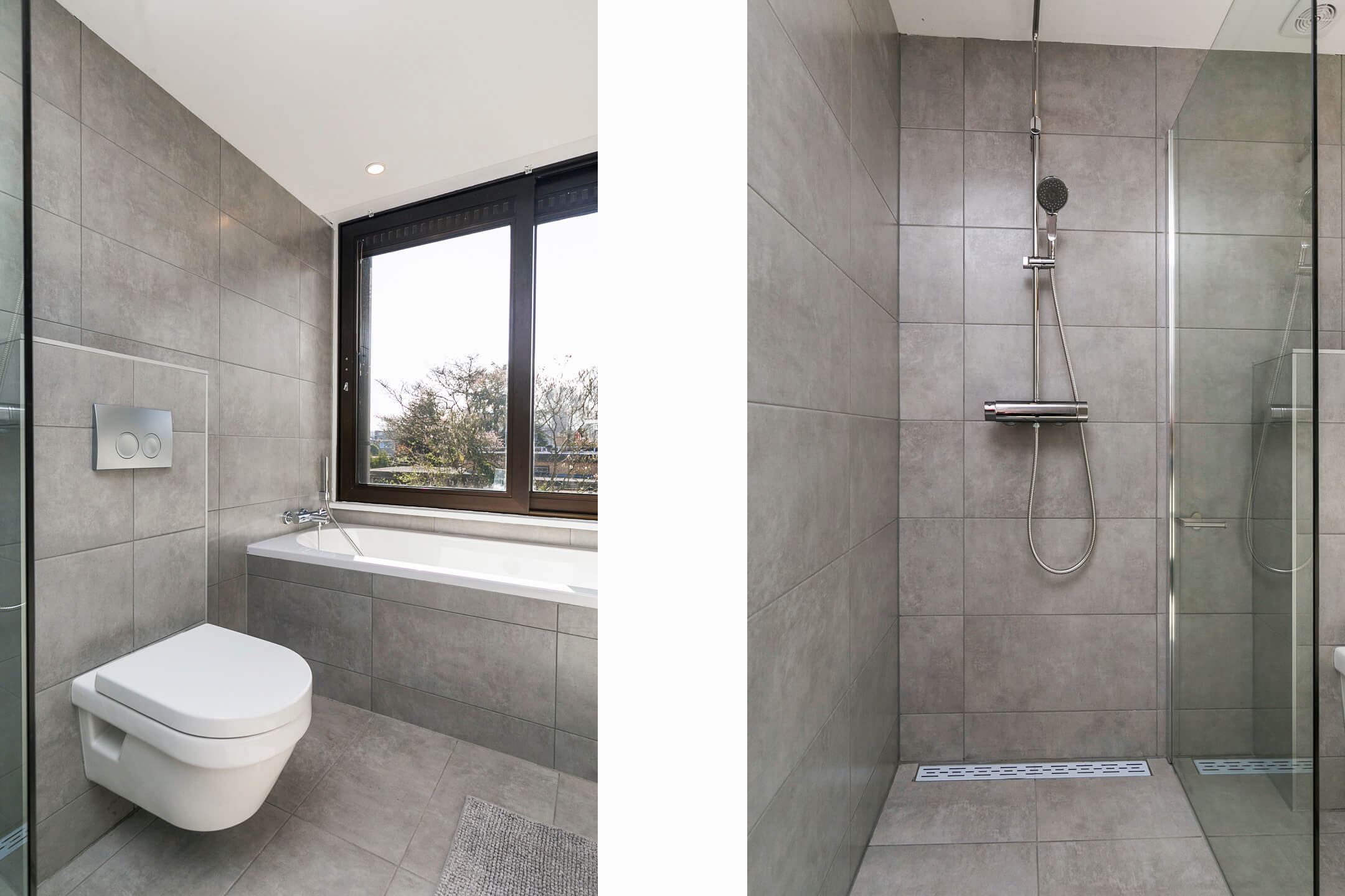 Door middel van de trap in de gang bereikt u de 1ste etage waar zich 2 ruime slaapkamers bevinden en een kleinere kamer die momenteel is ingericht als kantoor. De eerste ruime slaapkamer is ingericht met een comfortabel tweepersoonsbed en 2 ruime garderobekasten. De tweede slaapkamer heeft een eenpersoonsbed en is ook voorzien van een ruime garderobekast. De badkamer is volledig gerenoveerd en voorzien van een ligbad, inloopdouche, toilet en wastafelmeubel. In de badkamer is ook een aparte ruimte met een wasmachine en een aparte droger.