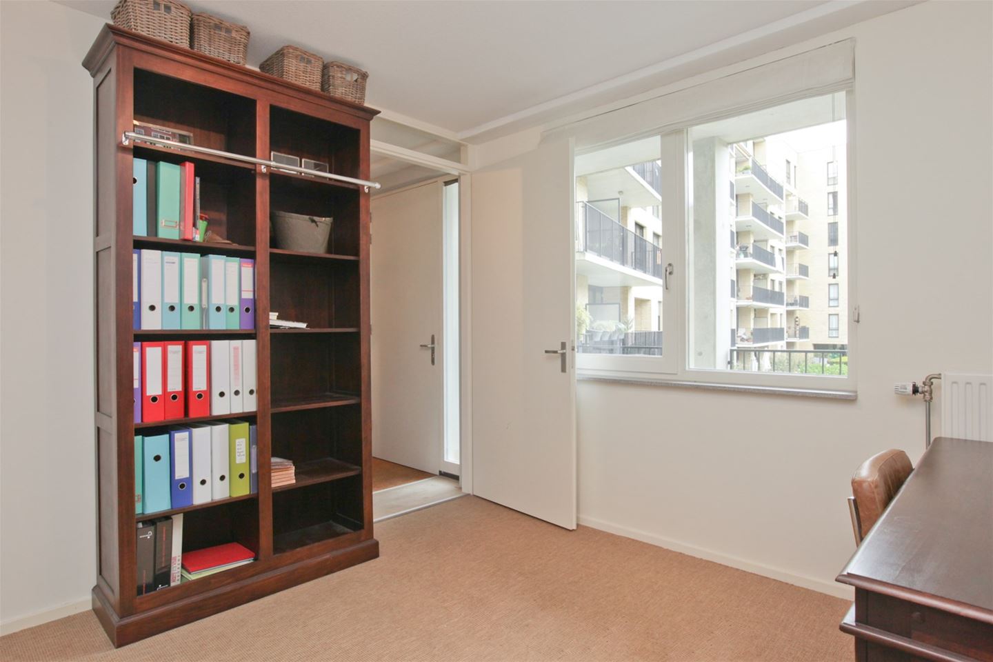 The apartment is located in a luxury modern complex, build in 2005 with the latest standards of technology. You enter the complex through a secured entrance. The apartment is located on the 2nd floor which can be reached by elevator. You will enter the apartment through the hallway which leads to the living room with open kitchen and dining area. Throughout the apartment lies a high-quality wooden floor. The living room has a view over the Stadiongracht. The open kitchen is equipped with all the modern appliances. Also accessible through the hallway are the 2 bedrooms. The master bedroom is spacious and harvests a double bed and walk-in closet. The second  bedroom is a generous single bedroom. The modern bathroom comes with a full bathtub, a walk-in shower with rain shower, double washbasin and luxury cabinet.