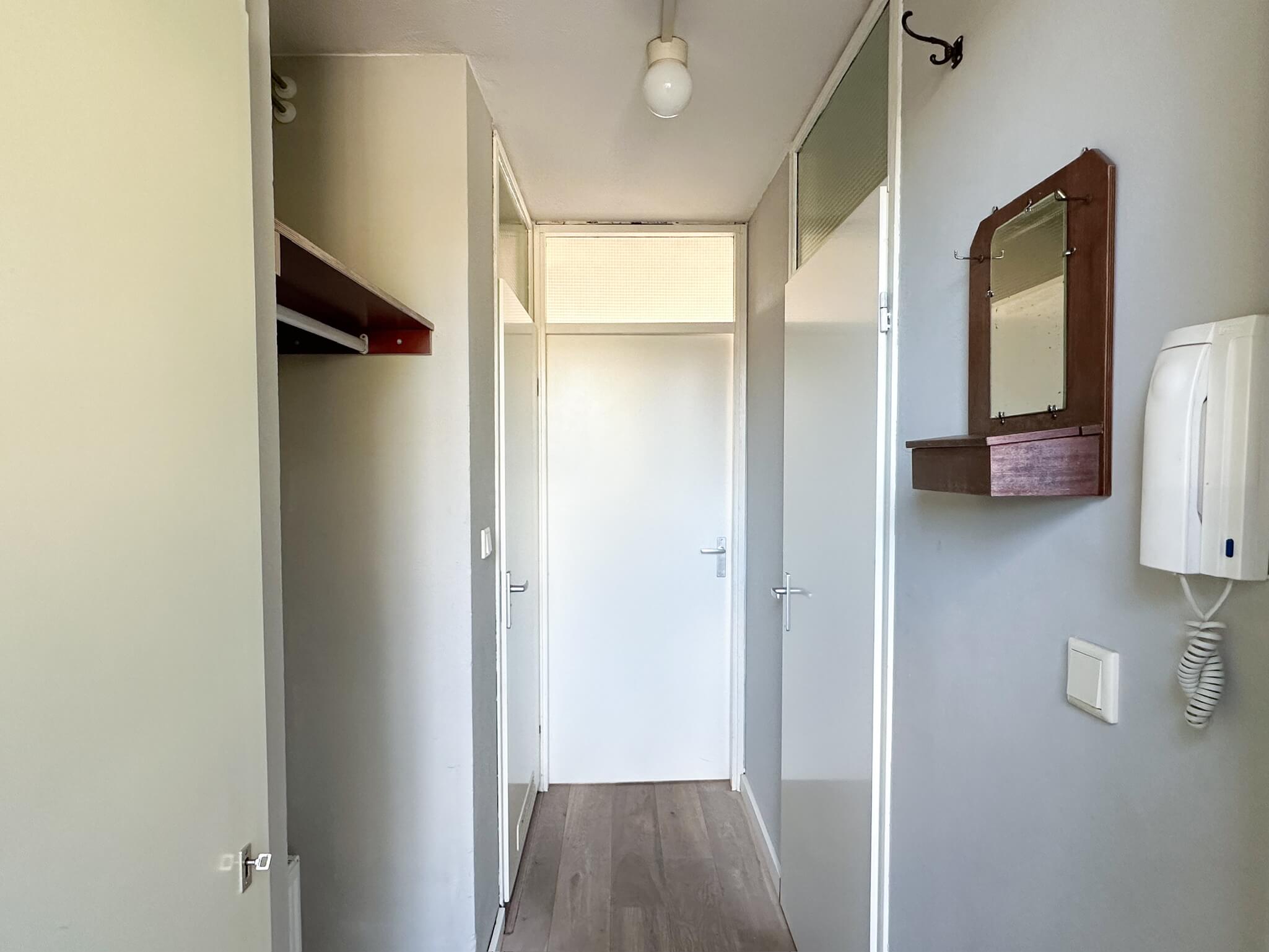 Bij binnenkomst staat u in de hal die alle vertrekken met elkaar verbindt. Hier is ruimte om jassen en schoenen op te bergen en er bevindt zich een ruime kast om als berging of voorraadkast te gebruiken. Door de gehele woning ligt een mooi eikenhouten parket.