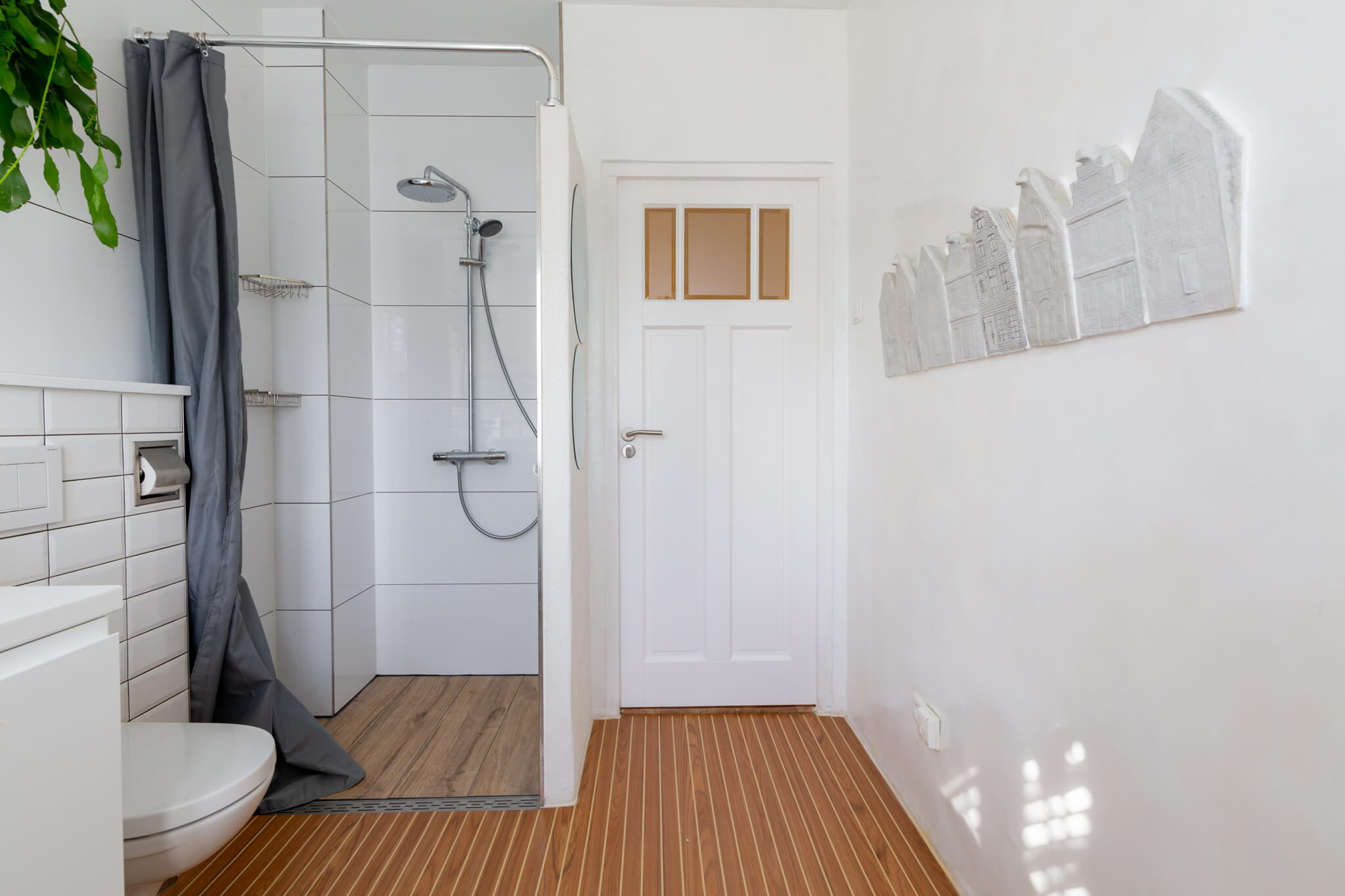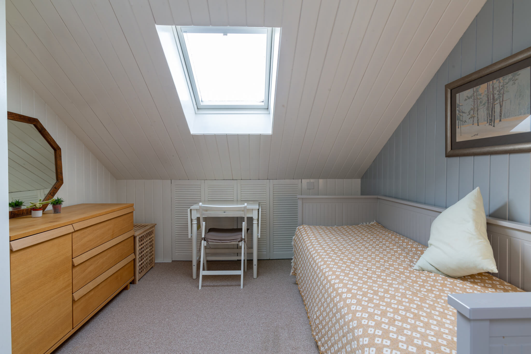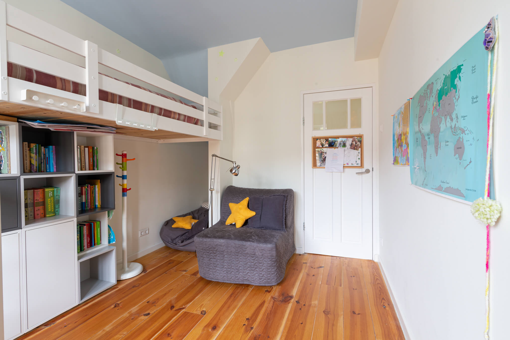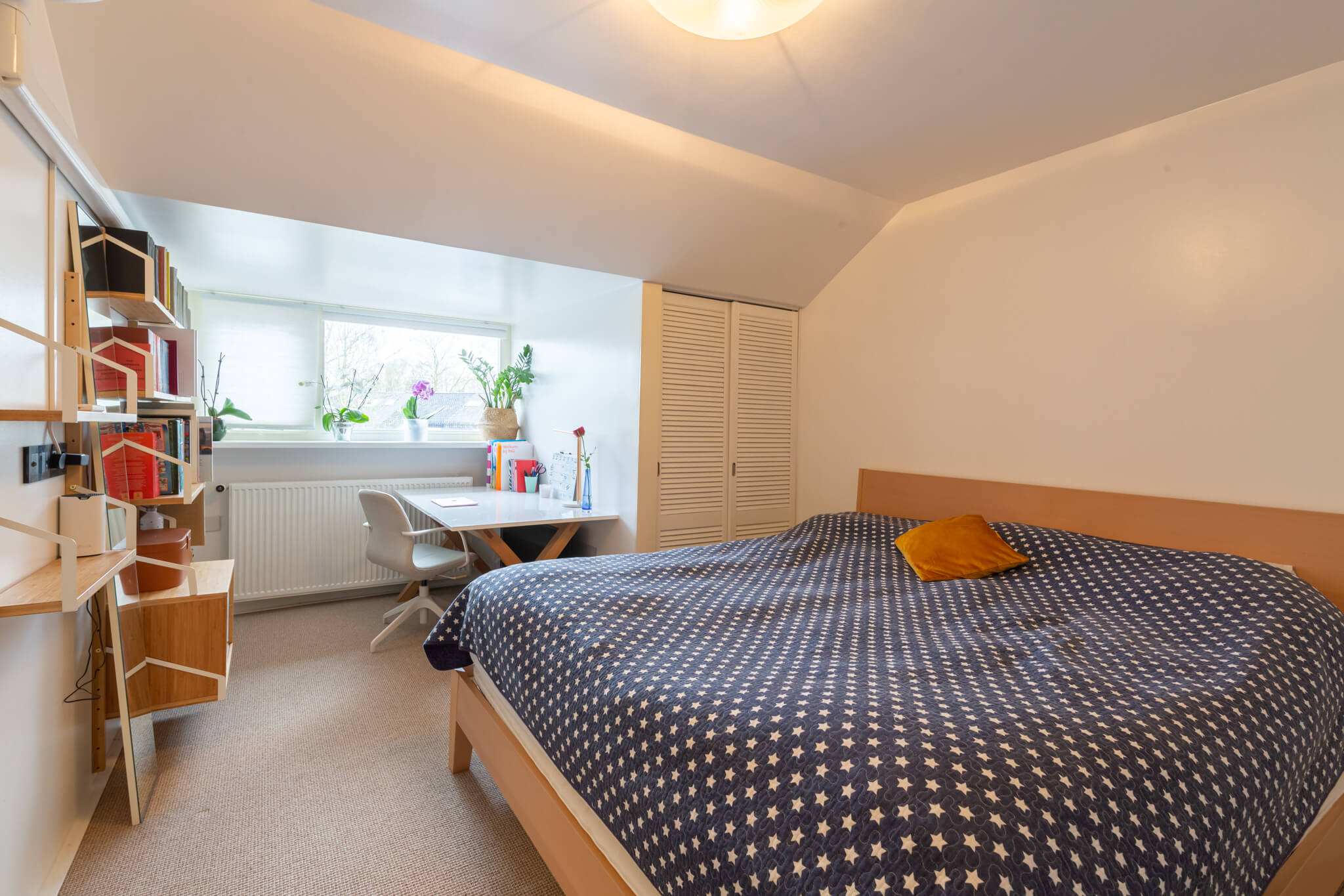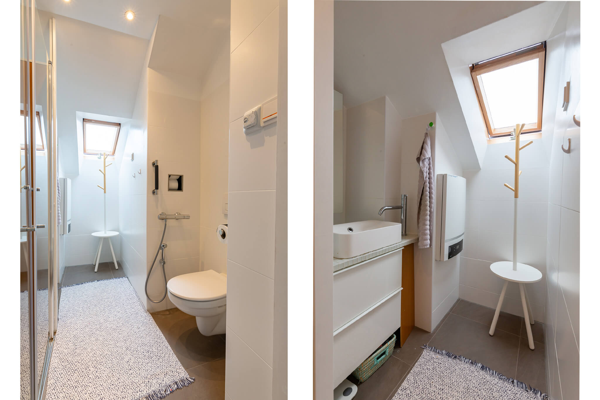 De 2e etage biedt veel privacy, ideaal voor een au pair of logees. Deze verdieping heeft 2 slaapkamers. Een van de slaapkamers is uitgerust met airconditioning. De badkamer is voorzien van een inloopdouche, toilet en wastafel. Op de zolderverdieping is veel inpandige bergruimte gerealiseerd door middel van inbouwkasten.