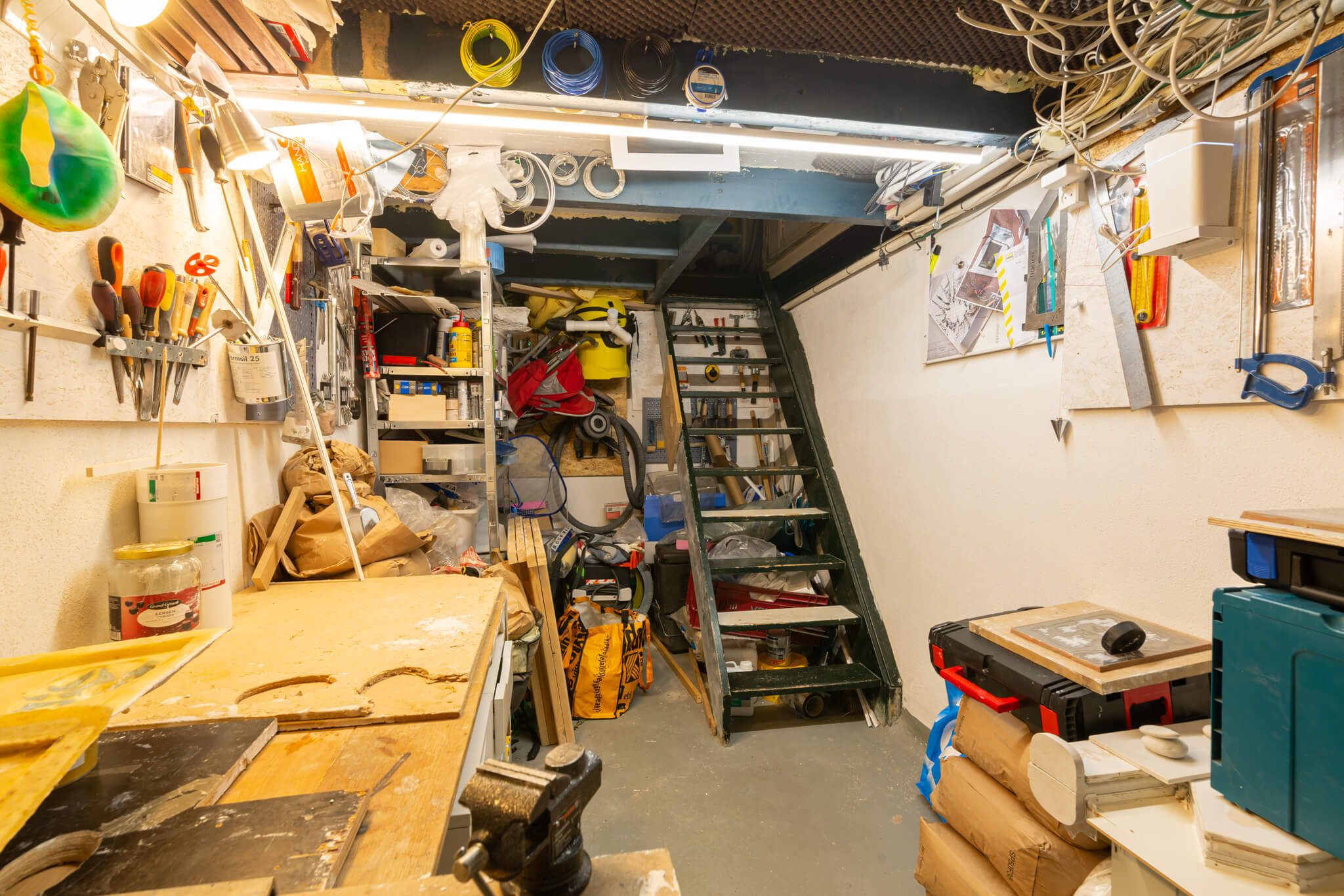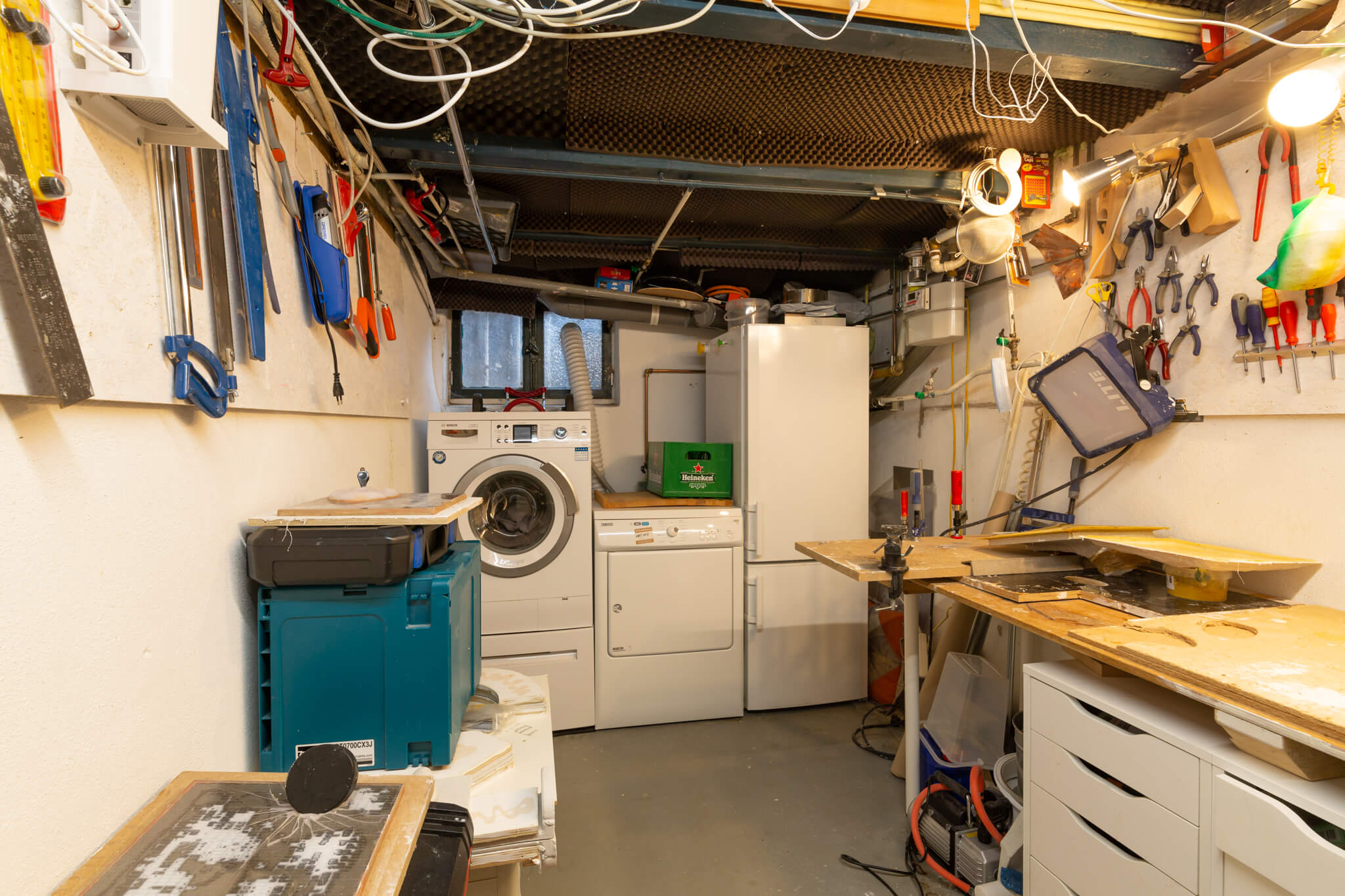 In de kelder van ca. 10 M2 is een aansluiting voor wasmachine en droger. Hier bevindt zich ook de centrale stofzuigunit, dit systeem loopt door het gehele huis. De kelder is niet meegerekend bij de NEN-meting, met de oppervlakte van de kelder meegerekend is de gebruiksoppervlakte ca. 200M2.