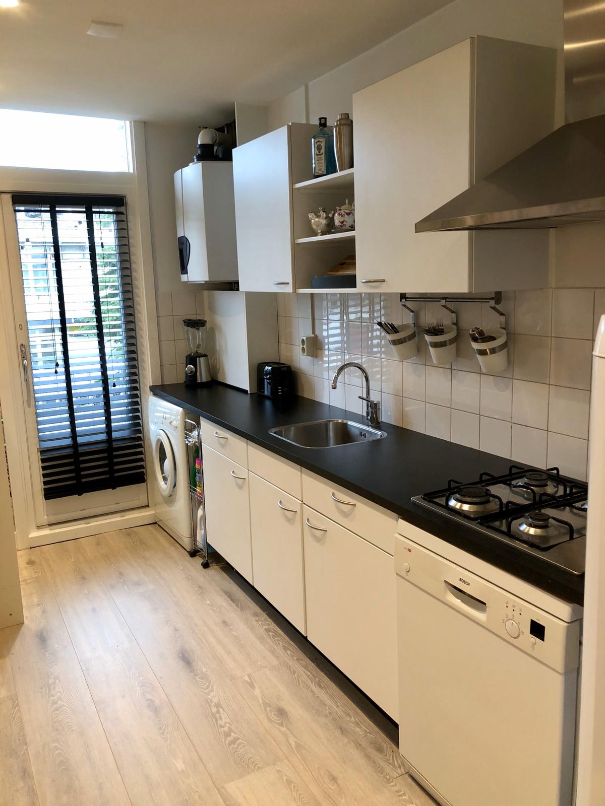 Recentelijk gerenoveerd ruim appartement te huur in de bruisende Baarsjes. Zowel het interieur als een groot deel van het meubilair is recentelijk vernieuwd. U betrekt een fris huis van alle gemakken voorzien. Het is een heerlijk licht tweekamerappartement met twee balkons. Het balkon aan de voorzijde is bereikbaar vanuit de woonkamer met openslaande deuren waar u kunt genieten van de ochtendzon. Het tweede ruime balkon is gelegen op het zuidwesten daar heeft u vanaf twee uur de hele dag zon en is ruim genoeg om te dineren. In de omgeving bevinden zich verschillende parken, winkels, leuke horeca gelegenheden en culturele etablissementen waar u zich in uw vrije tijd kan vermaken.