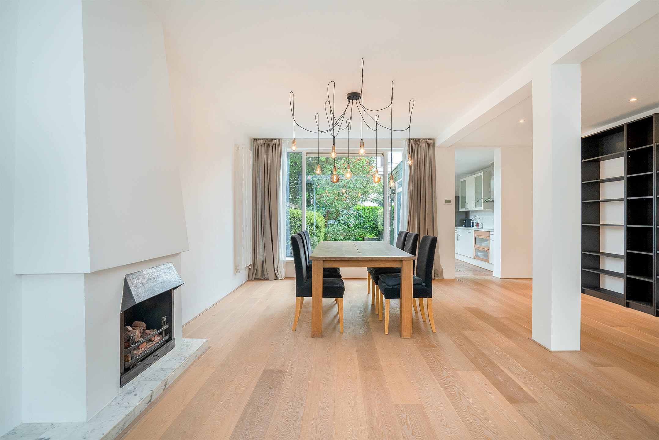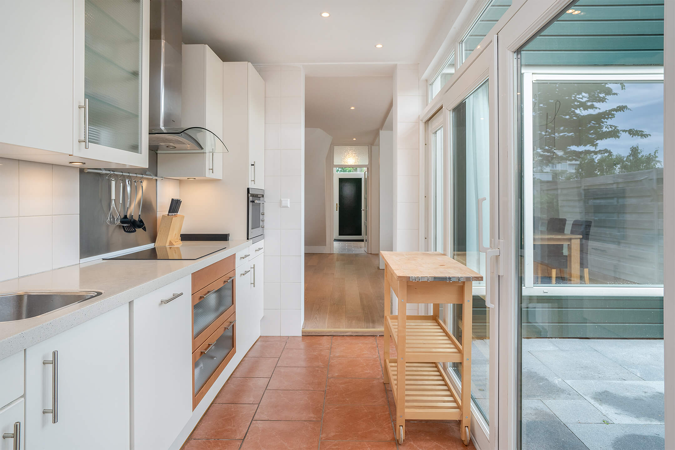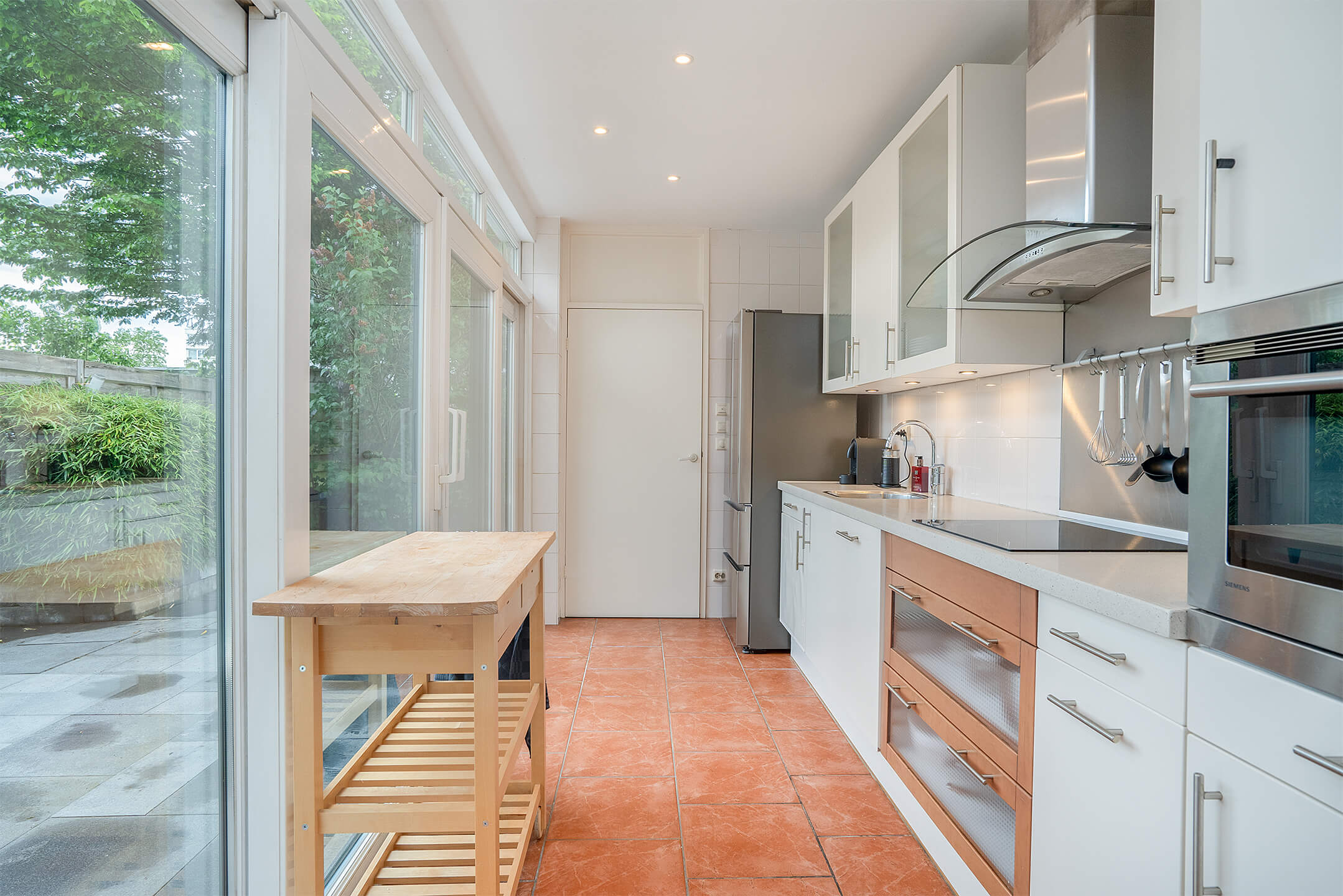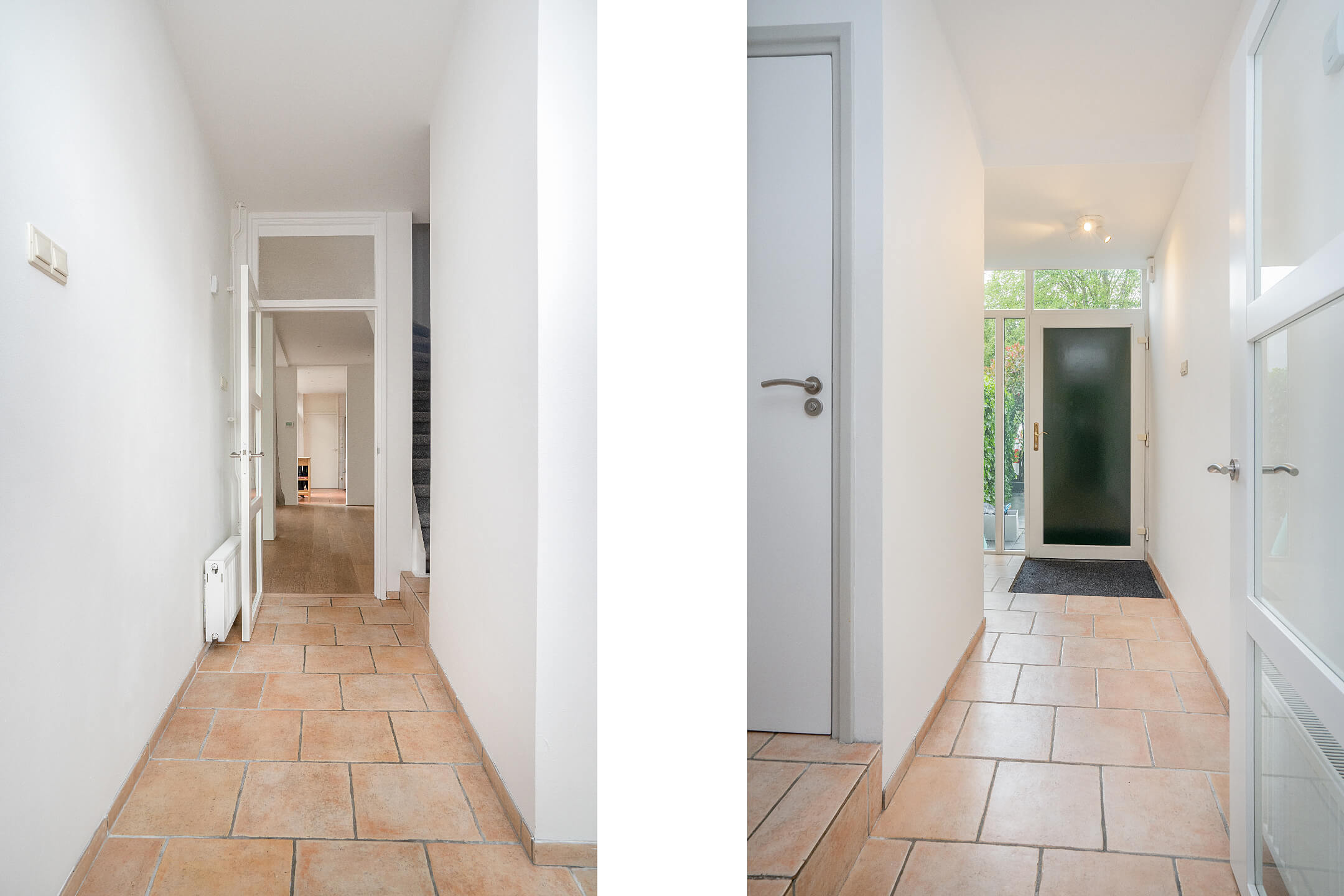 Via de voortuin bereik u de woning waar u bij binnenkomst arriveert in de hal waar ruimte is om jassen e.d. op te bergen. In de hal bevind zich ook het gastentoilet. De doorzonwoonkamer biedt veel lichtinval en is ruim opgezet met een achtpersoonseettafel en hoekbank met flatscreen-TV om s’avonds te ontspannen. De volledige woonkamer is voorzien van een mooi, licht-eiken parket. Grenzend aan de woonkamer is de half-open keuken die voorzien is van een vaatwasser en combi-magnetron, een keramische kookplaat en een ruime koel-vriescombinatie. Aangrenzend is de bijkeuken waar tevens een aparte wasmachine en droger staan.