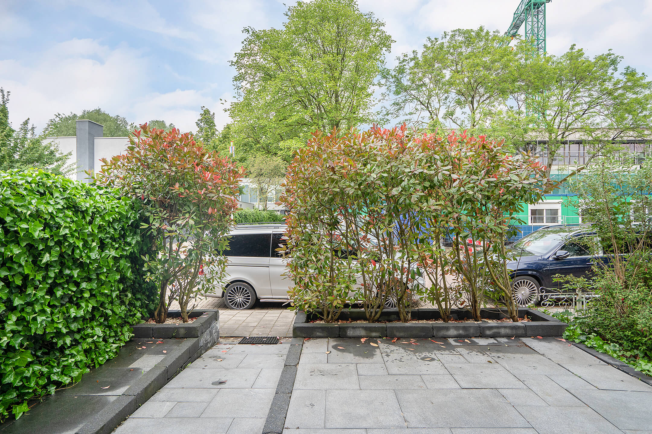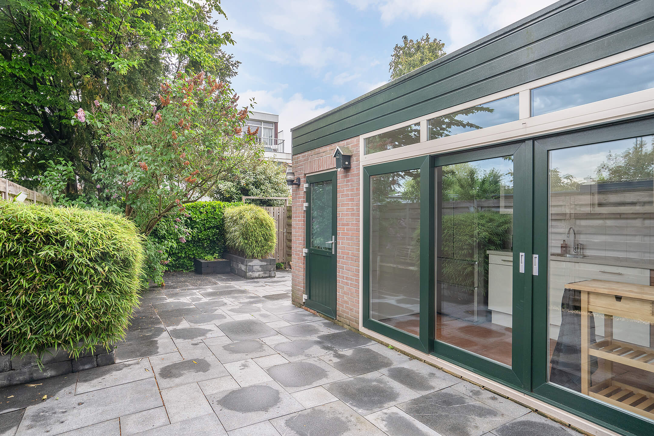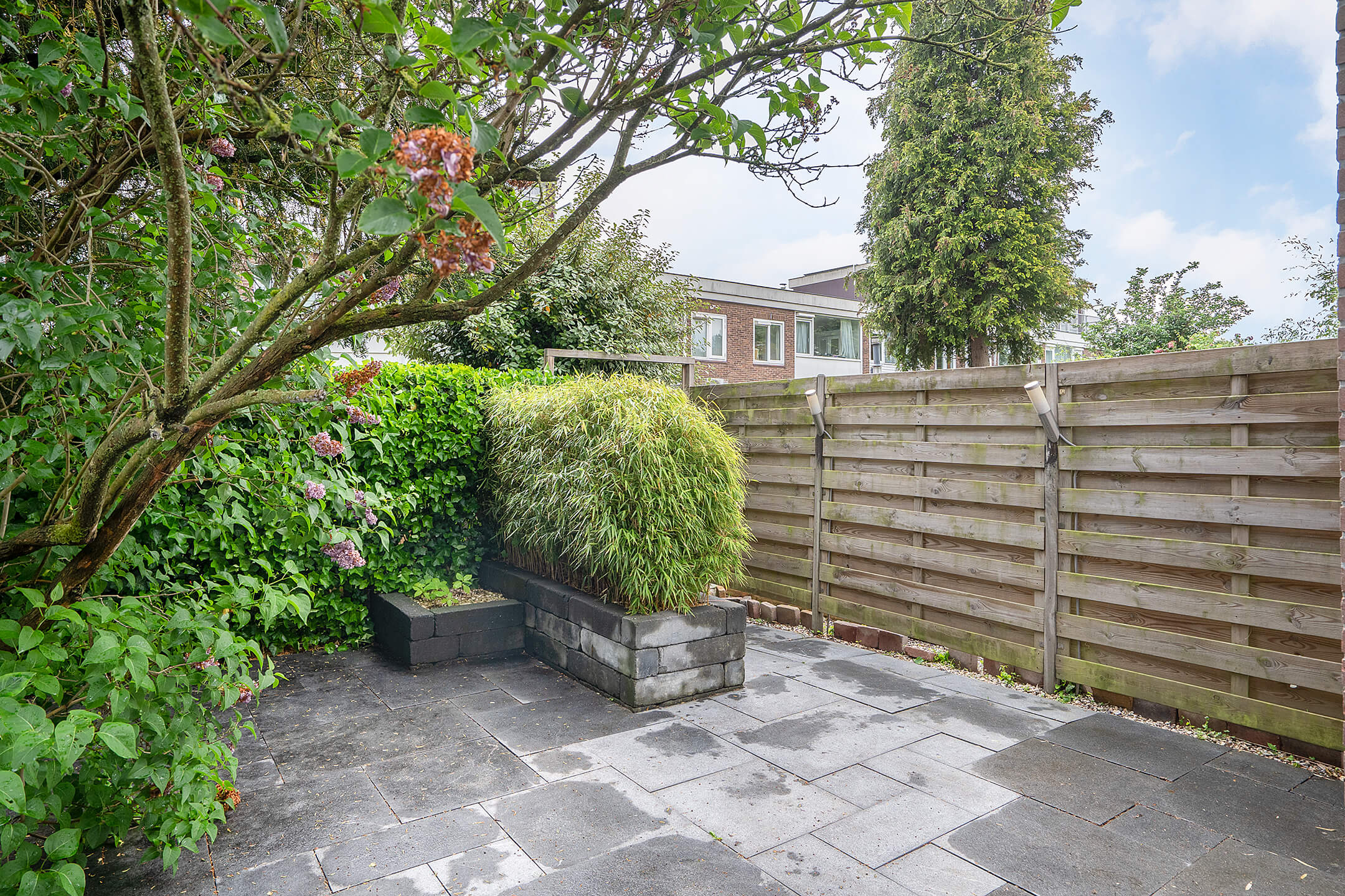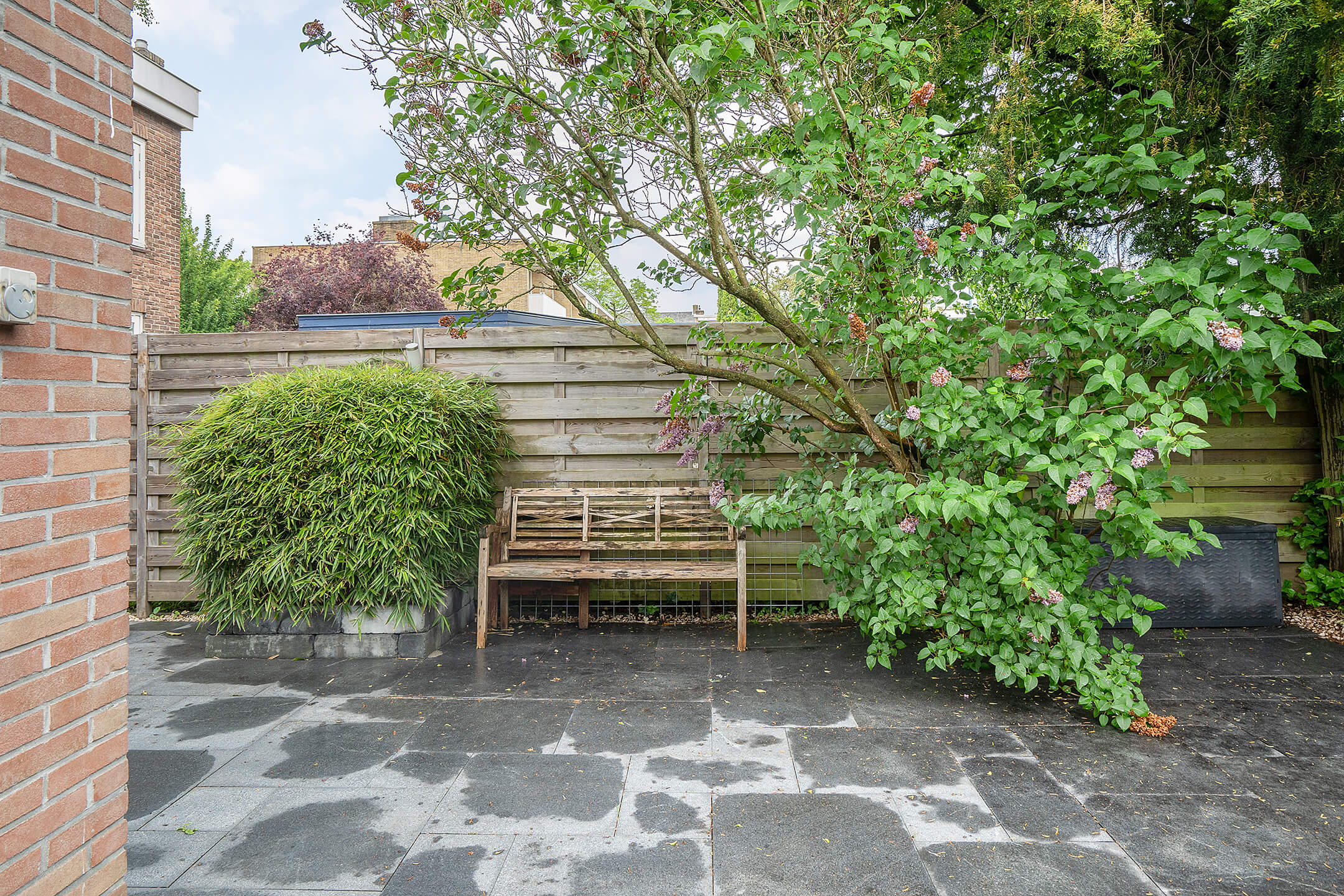 Via een schuifpui in de keuken betreedt u de ruime achtertuin op het oosten. De tuin heeft vooral s’ochtends zon, de perfecte plek om te ontbijten of om te genieten van de eerste kop koffie. De achtertuin beschikt over een achterom, zodoende kunt u makkelijk uw fietsen e.d. in de tuin stallen. De achtertuin is voorzien van licht dat automatisch aangaat als het donker wordt en er is toegang tot elektra voor bijvoorbeeld uw e-bike. Vanaf het begin van de middag staat de zon in de voortuin waar voldoende ruimte is om een tuin- of loungeset te plaatsen om van de zon te genieten en buiten te dineren of werken. Beide tuinen zijn betegeld en onderhoudsarm.