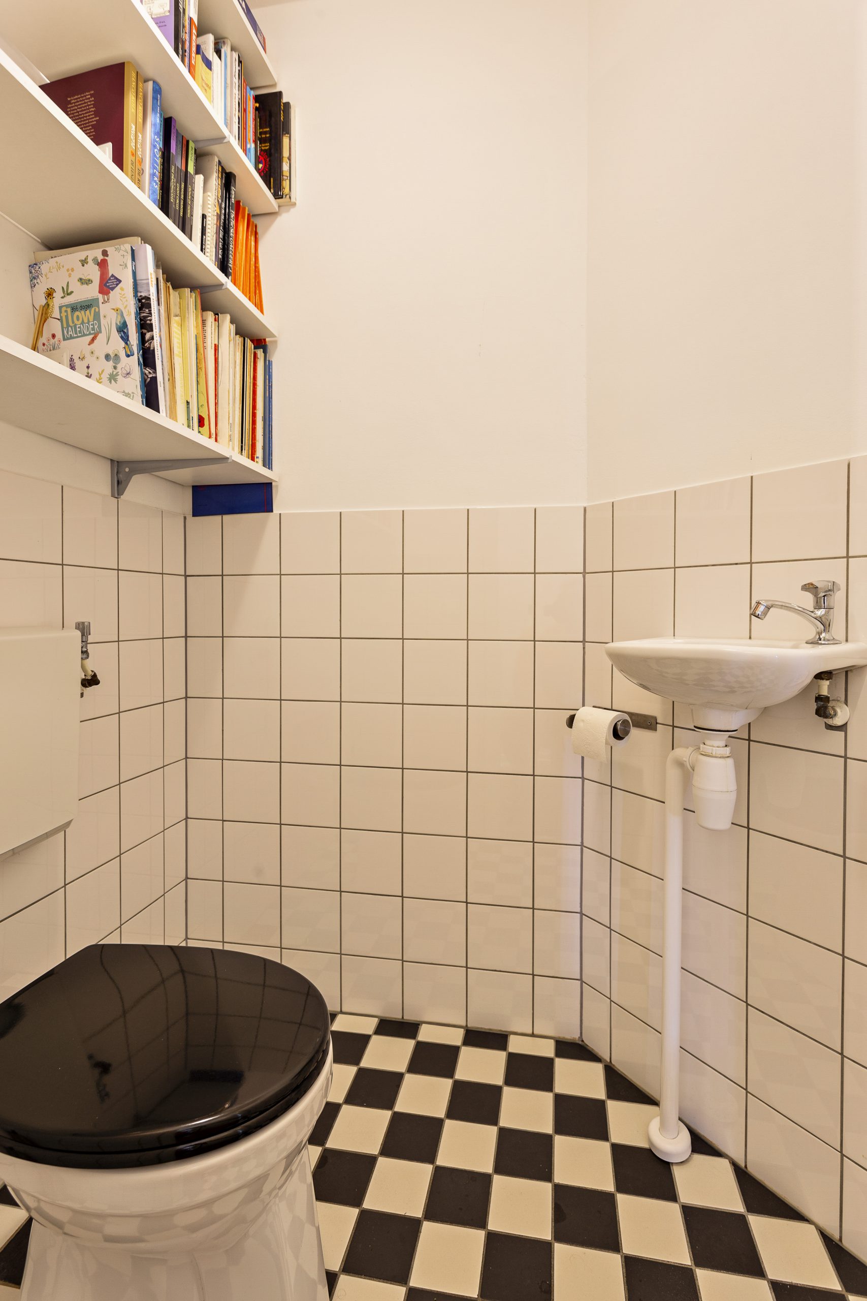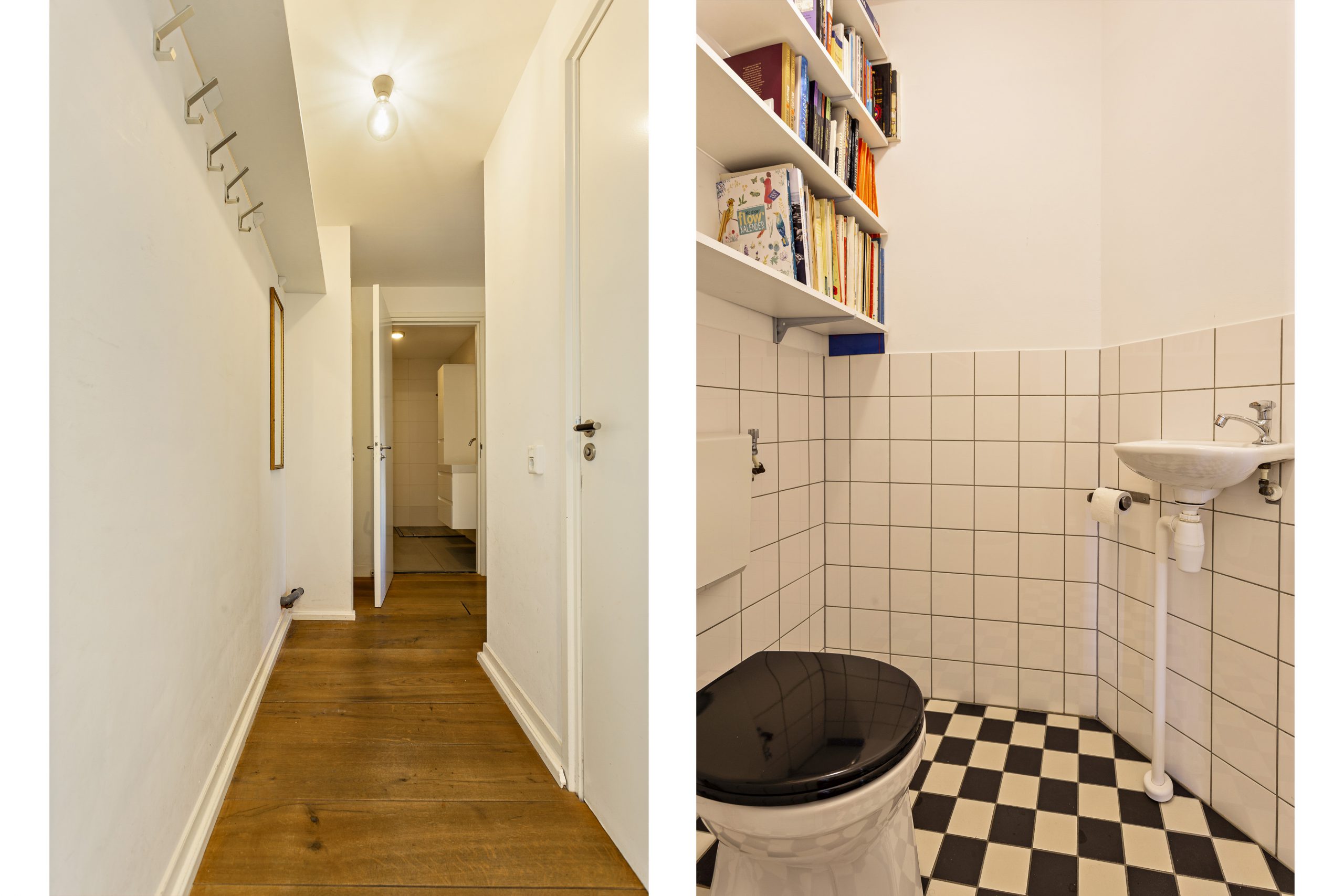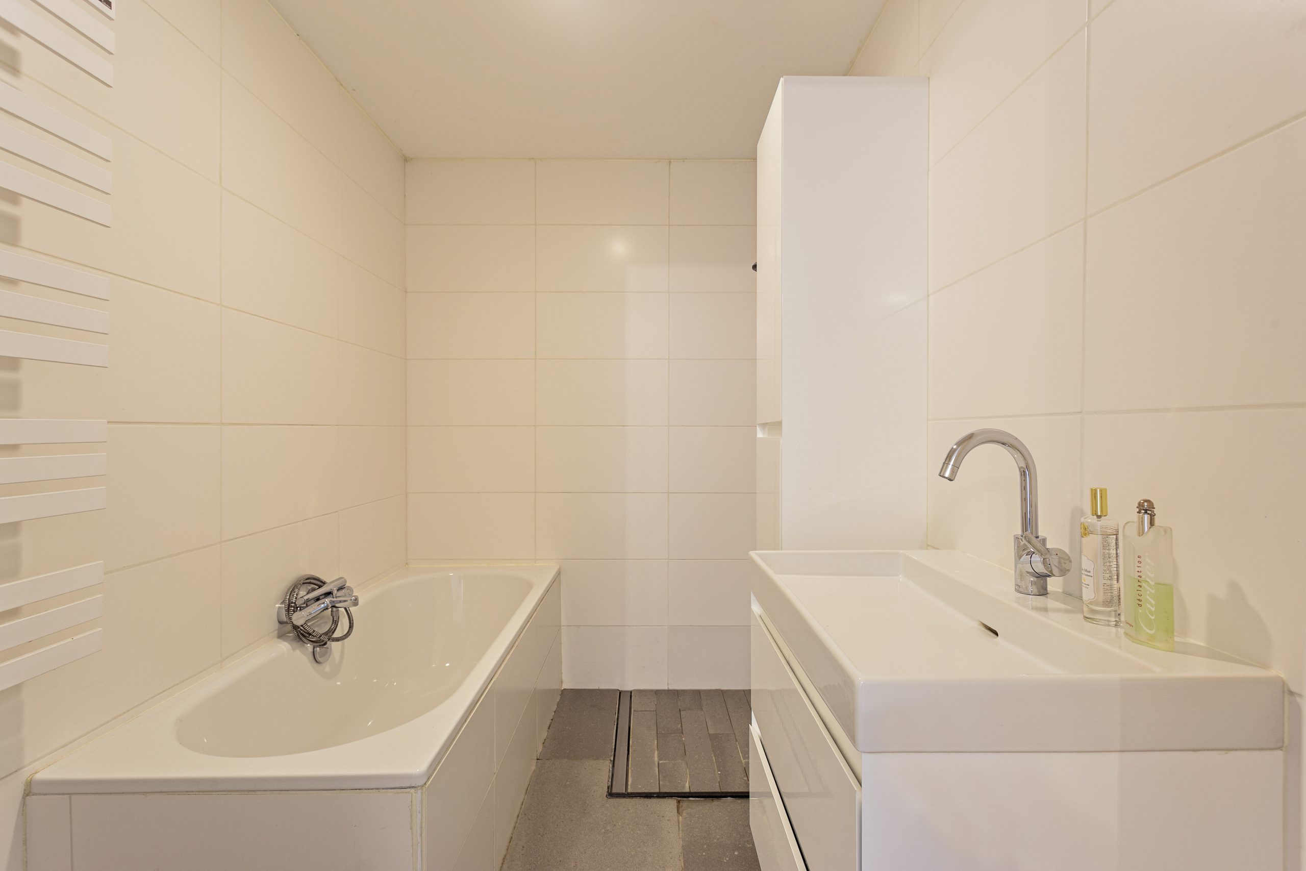 Vanuit de keuken loopt een gang die de toegang biedt tot het toilet, de badkamer en de slaapkamers. Het is een ruim toilet en een luxe badkamer met ligbad, inloopdouche en een wastafelmeubel met voldoende ruimte.