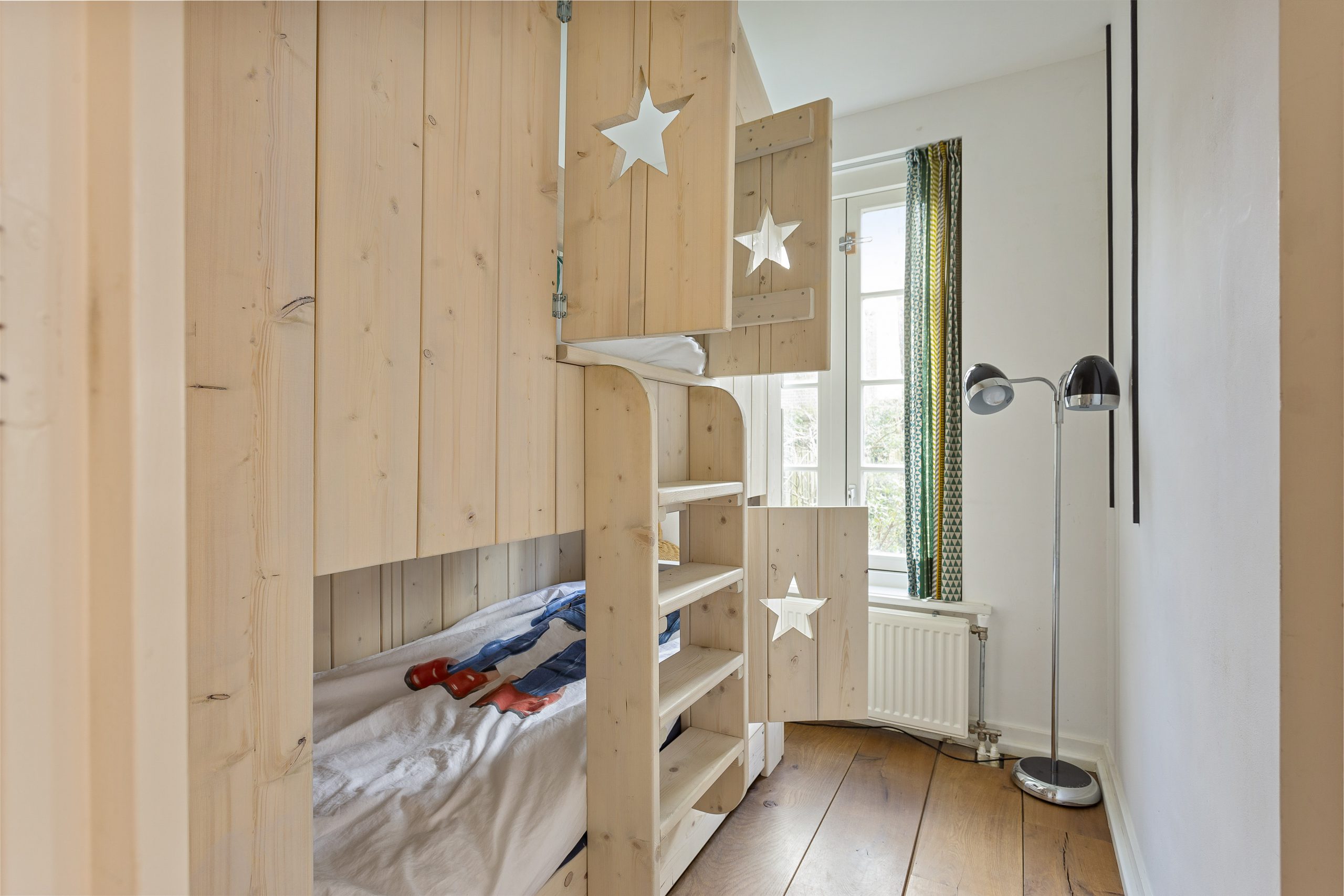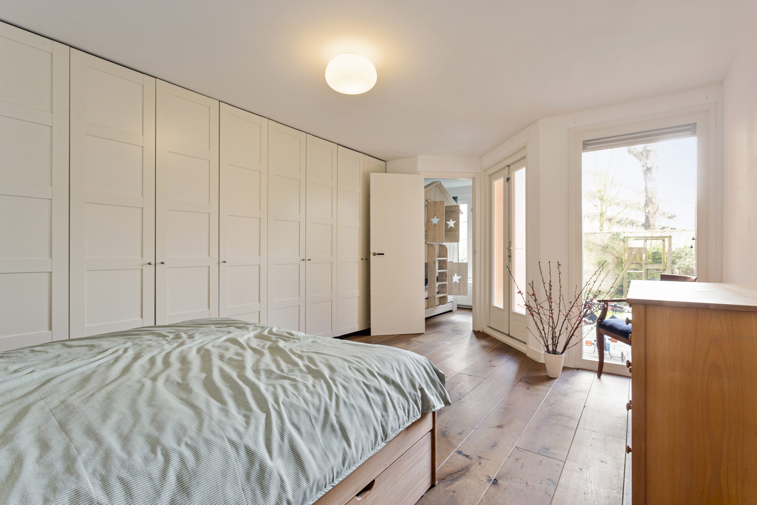 De ruime slaapkamer heeft grote ramen en biedt ook toegang tot de veranda en de tuin door openslaande deuren. De slaapkamer heeft een groot tweepersoonsbed met kledingkasten en een ladekast.  De kleine kamer is verbonden met de slaapkamer en daar bevindt zich een nieuw steigerhouten stapelbed van 1.85 in de vorm van een huisje, ideaal voor kinderen.