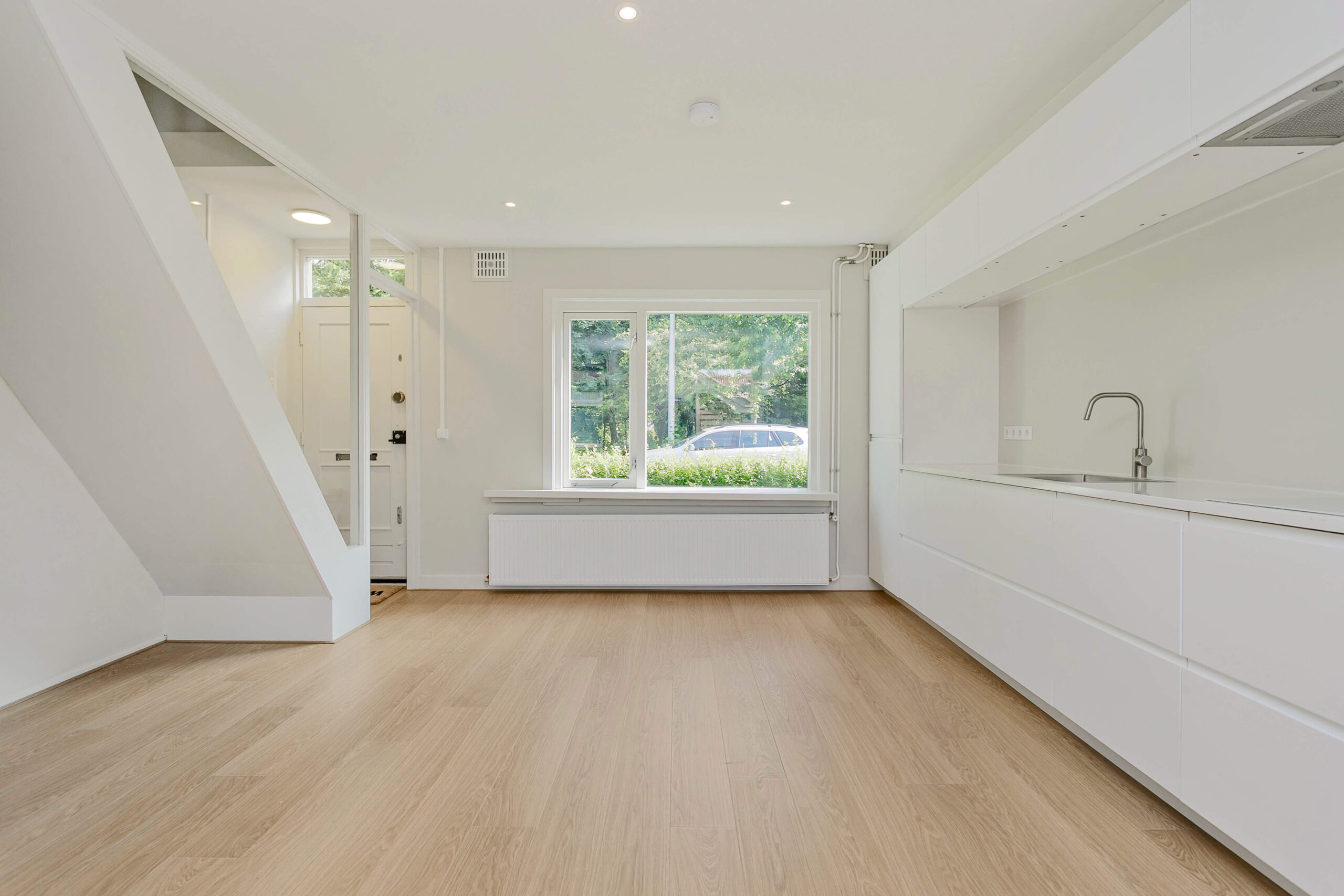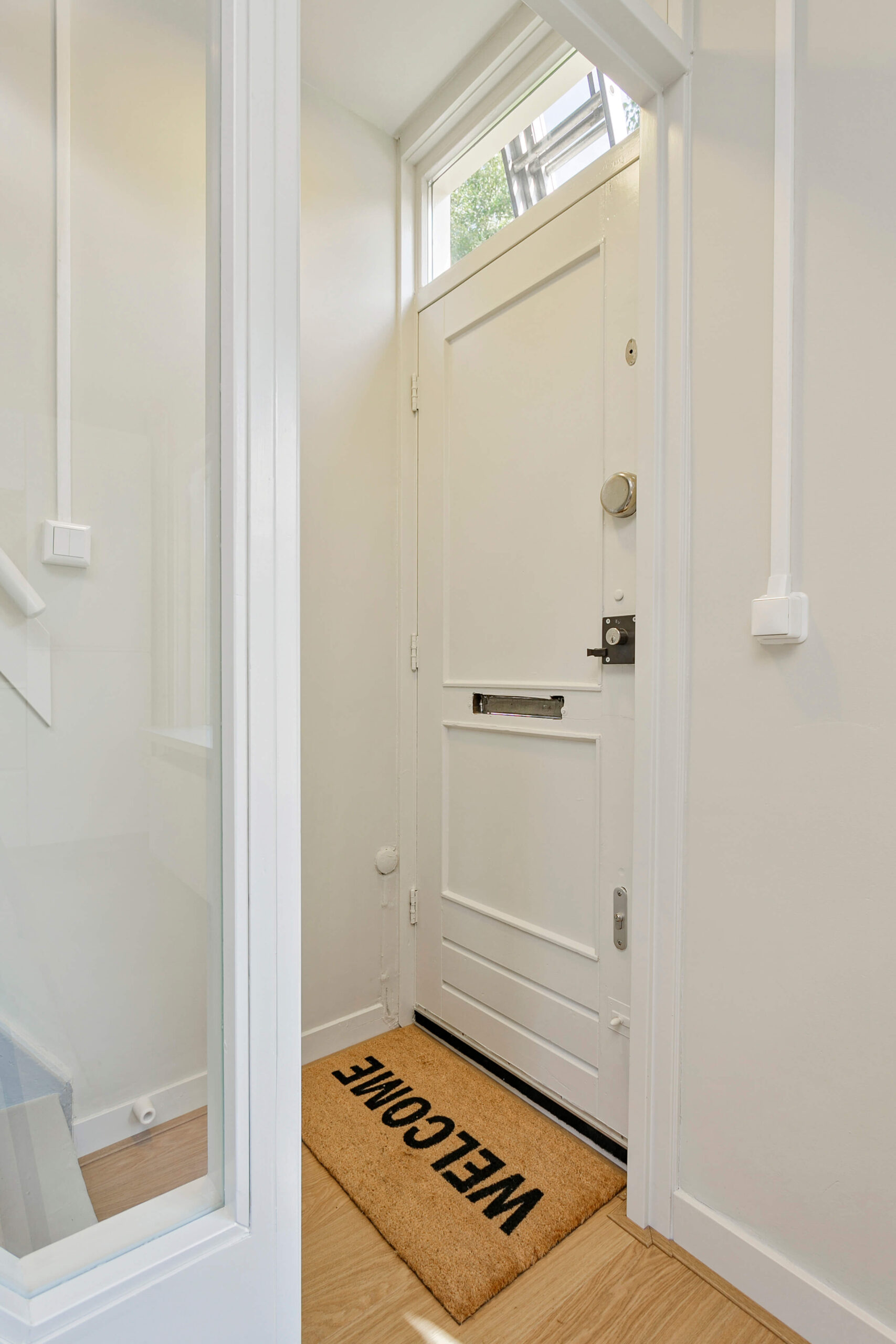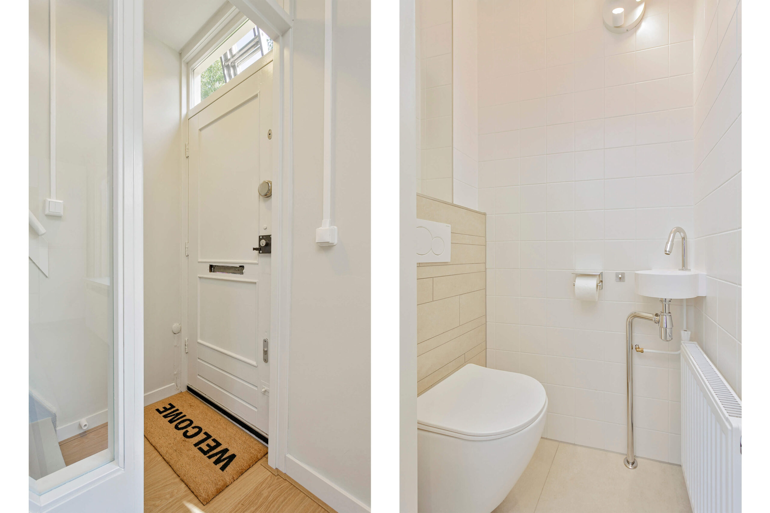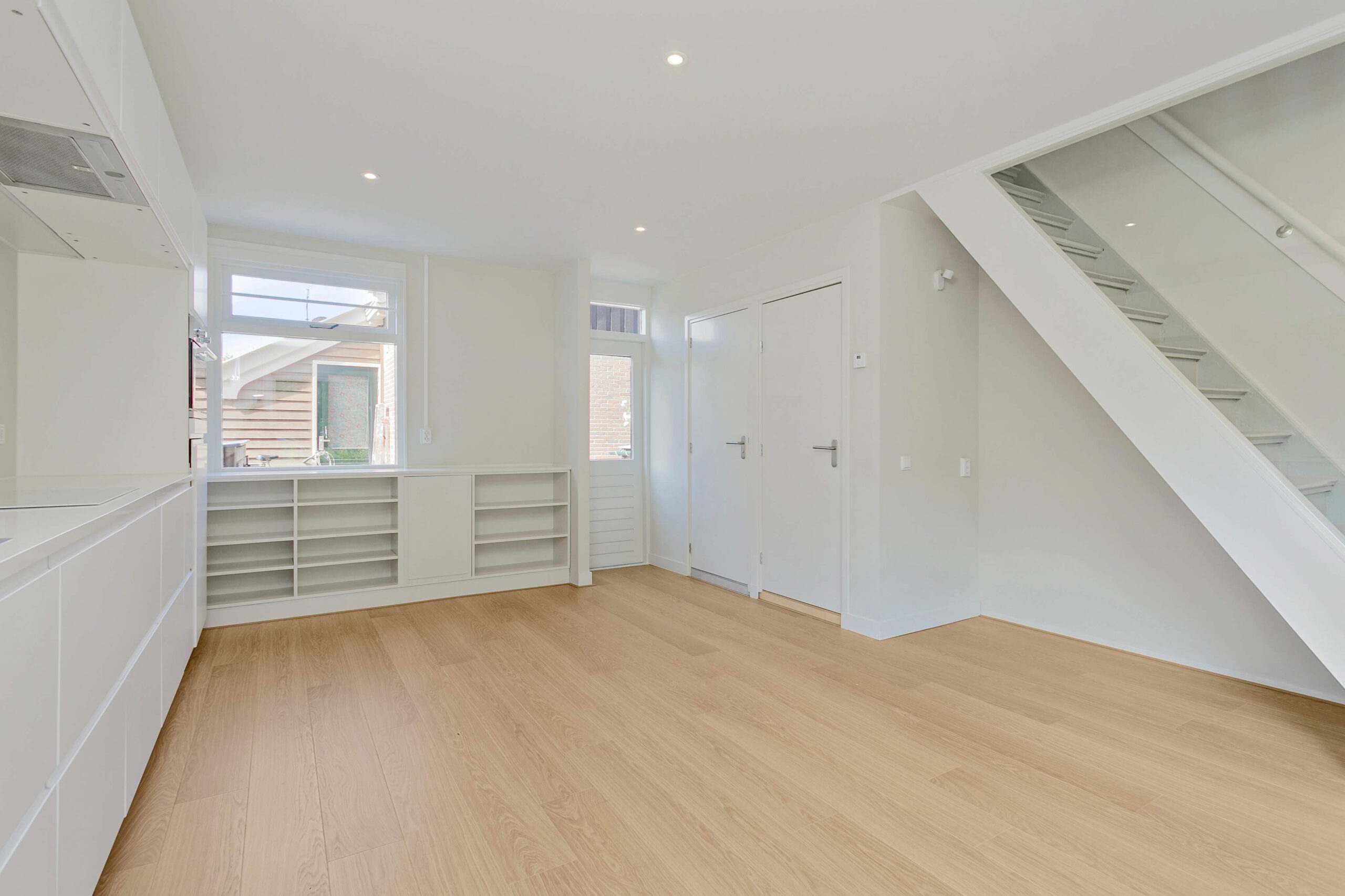 Het huis heeft een eigen ingang aan de Zamenhofstraat. Bij binnenkomst staat u in een kleine hal die leidt naar de trap en de woonkamer. De woonkamer is een doorzonkamer met zowel een voor- als achtertuin. U krijgt een zee aan licht binnen en heeft uitzicht op veel groen. De woonkamer heeft een grote, open keuken volledig voorzien van alle inbouw apparatuur. De keuken is uitgerust met veel opslagruimte, zowel voor keukengerei als persoonlijke spullen. Ook aan de achterwand van de woonkamer is ruimte voor opslag. In de woonkamer is toegang tot het toilet en de aparte wasruimte.