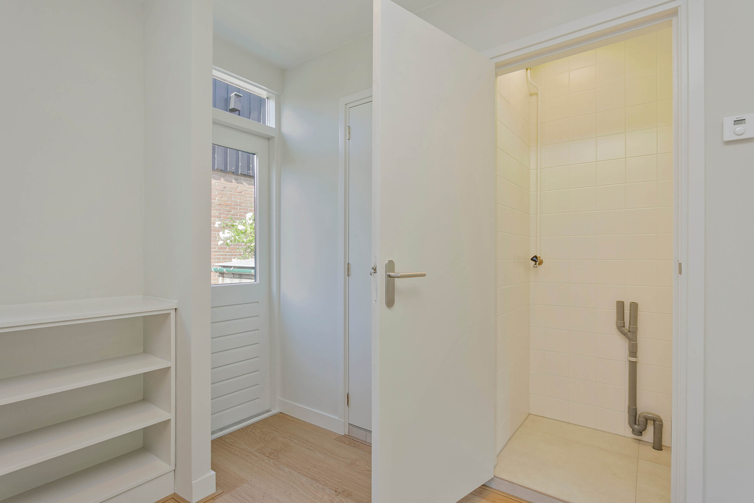 De woonkamer biedt toegang tot zowel de voor- als achtertuin. De achtertuin heeft een oppervlakte van 8 m2, voldoende ruimte om te tafelen of op een warme dag buiten te werken. De achtertuin grenst aan de gezamenlijke achtertuin die wordt gedeeld met de VVE. Er hangt een leuke sfeer tussen de bewoners. In de achtertuin is tevens opbergruimte voor tuinmateriaal. De achtertuin en het huis is ook via een achterpad te bereiken.